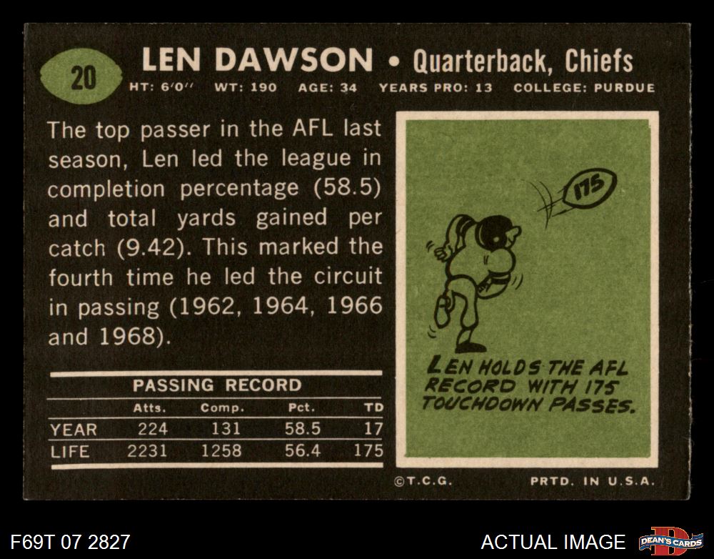 1969 Topps #20 Len Dawson 3 - VG
