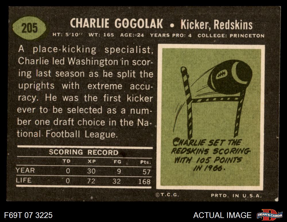 1969 Topps #205 Charlie Gogolak 7 - NM