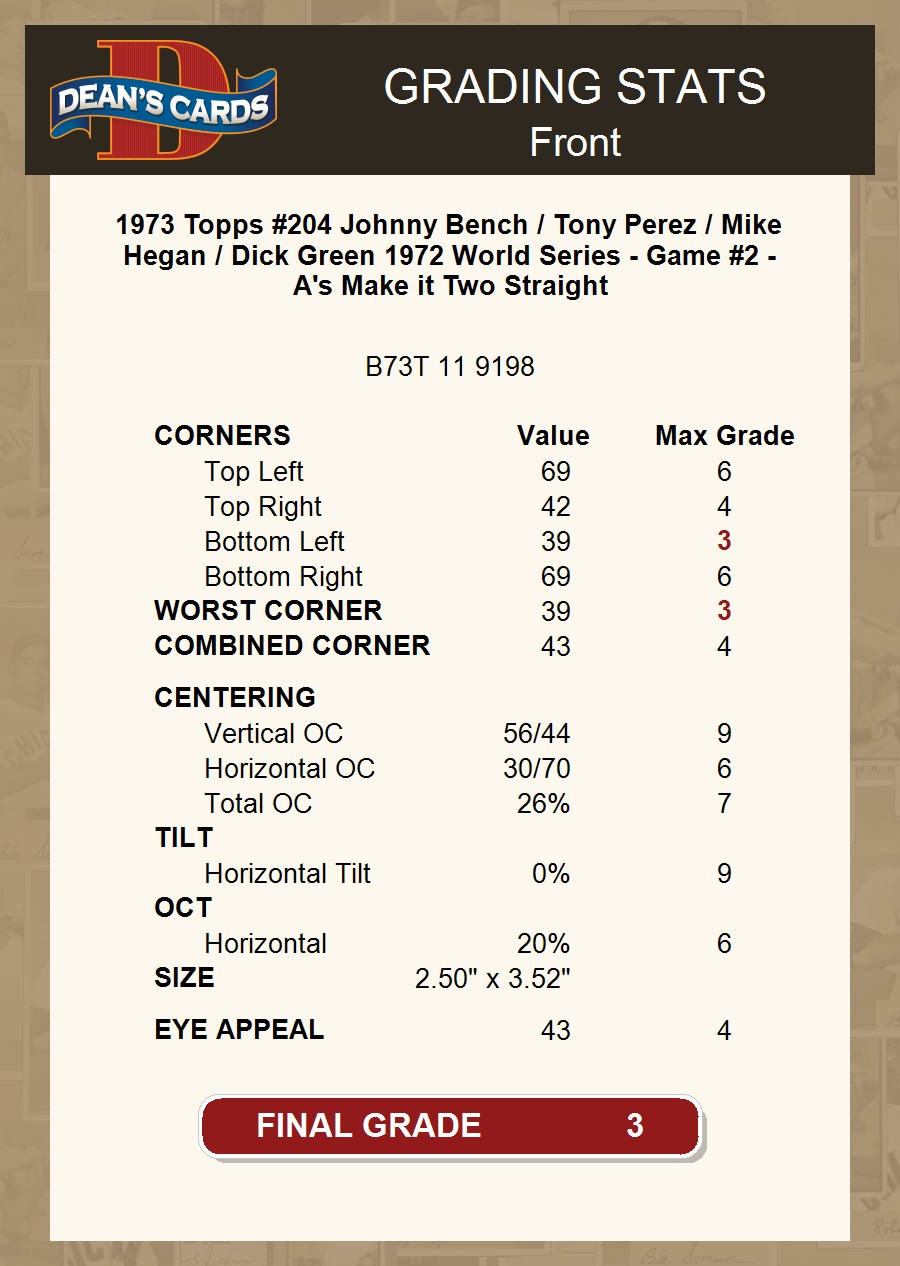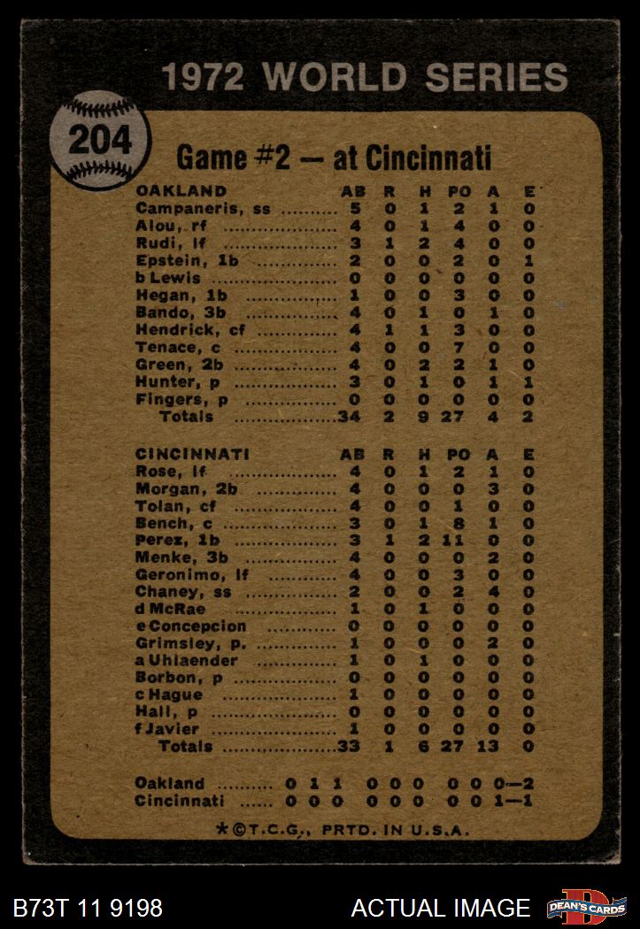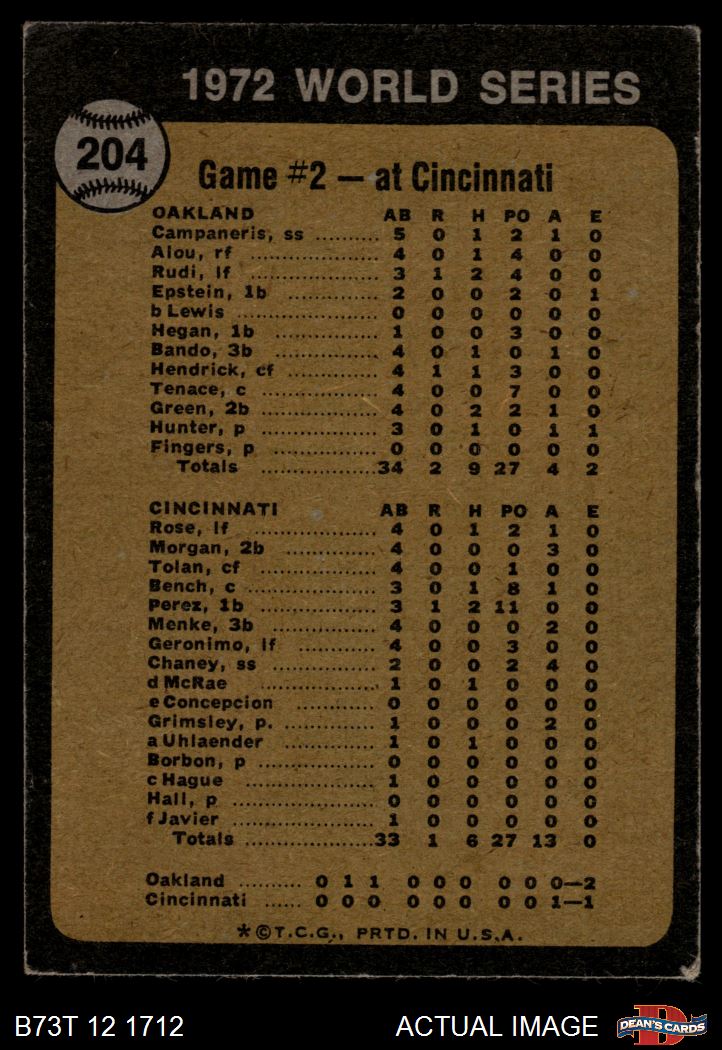 1973 Topps #204 Johnny Bench / Tony Perez / Mike Hegan / Dick Green 1972 World Series - Game #2 - A's Make it Two Straight 3 - VG