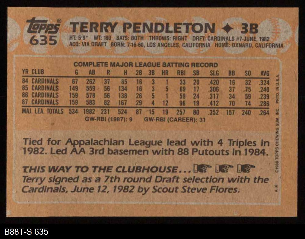 1988 Topps #635 Terry Pendleton