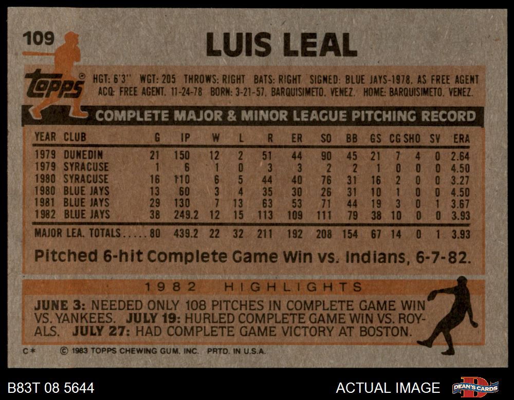 1983 Topps #109 Luis Leal