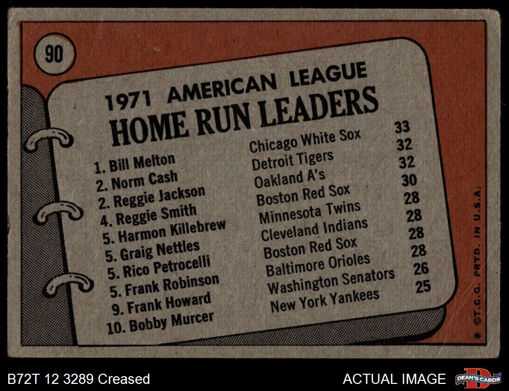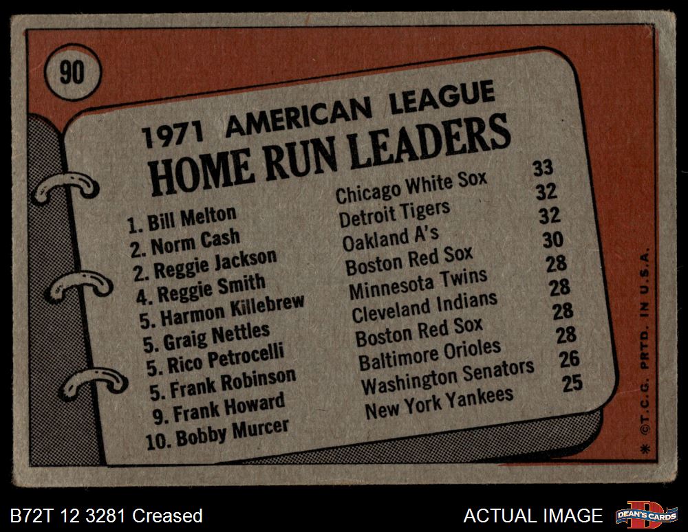 1972 Topps #90 - Reggie Jackson / Norm Cash / Bill Melton AL HR Leaders 1 - POOR