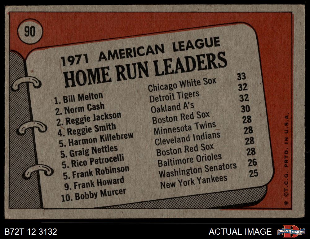 1972 Topps #90 - Reggie Jackson / Norm Cash / Bill Melton AL HR Leaders 2.5 - GD+