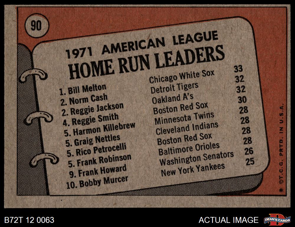 1972 Topps #90 - Reggie Jackson / Norm Cash / Bill Melton AL HR Leaders 4 - VG/EX