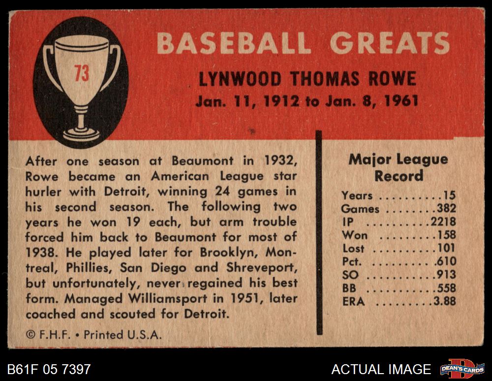 1961 Fleer #73 Schoolboy Rowe