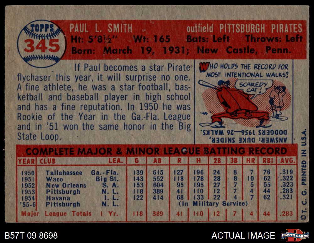 1957 Topps #345 Paul Smith 3 - VG