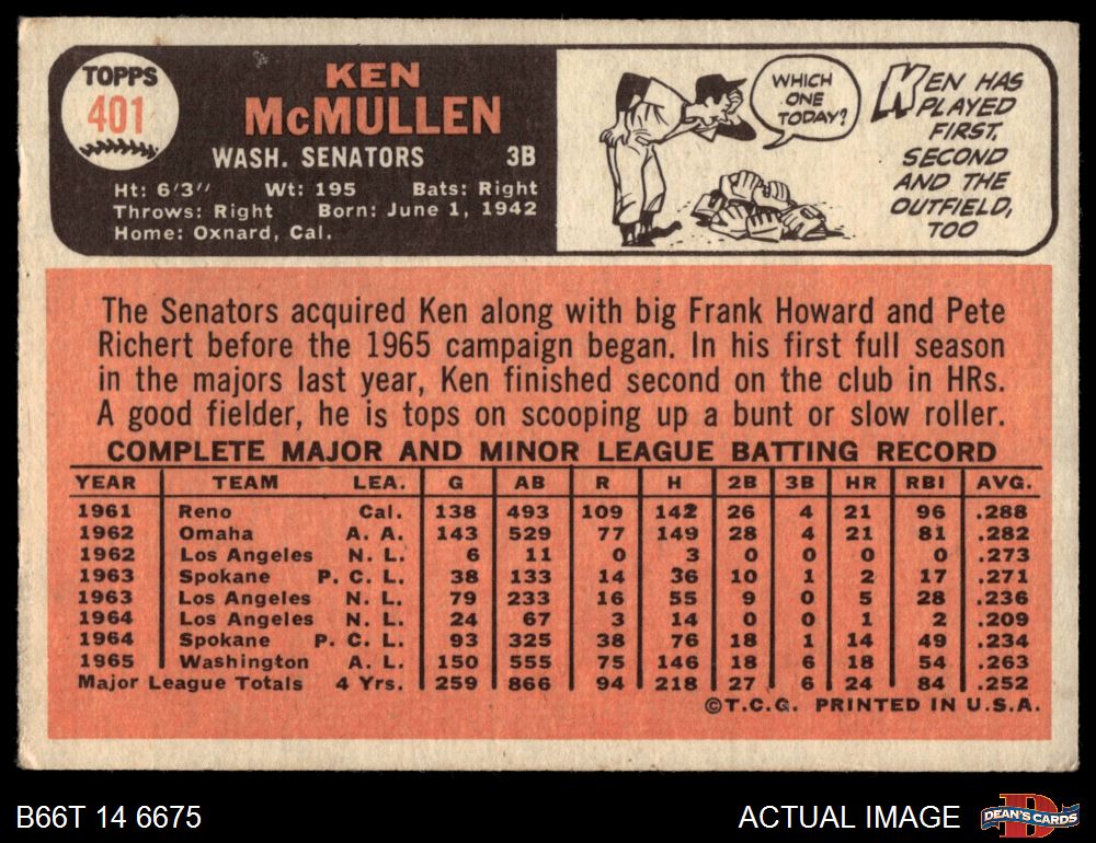 1966 Topps #401 Ken McMullen 3.5 - VG+
