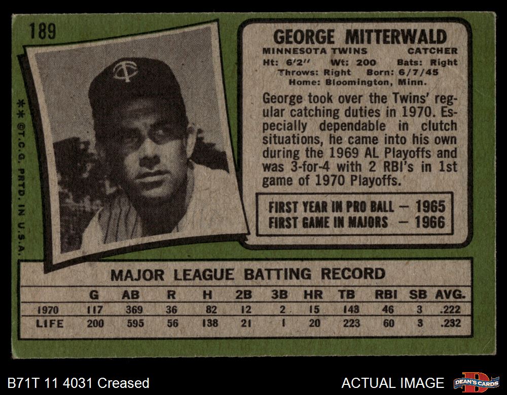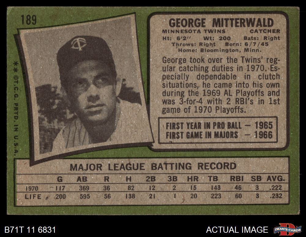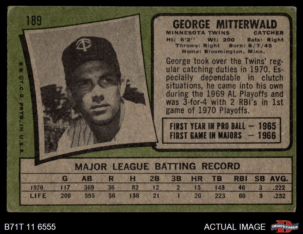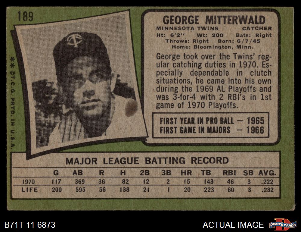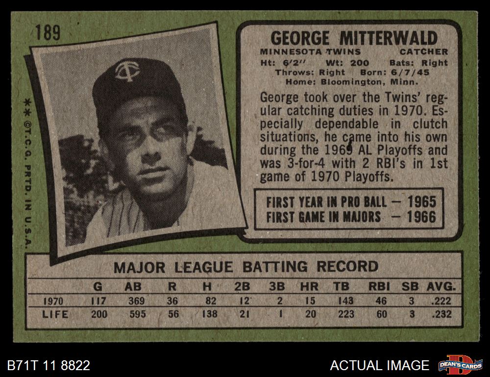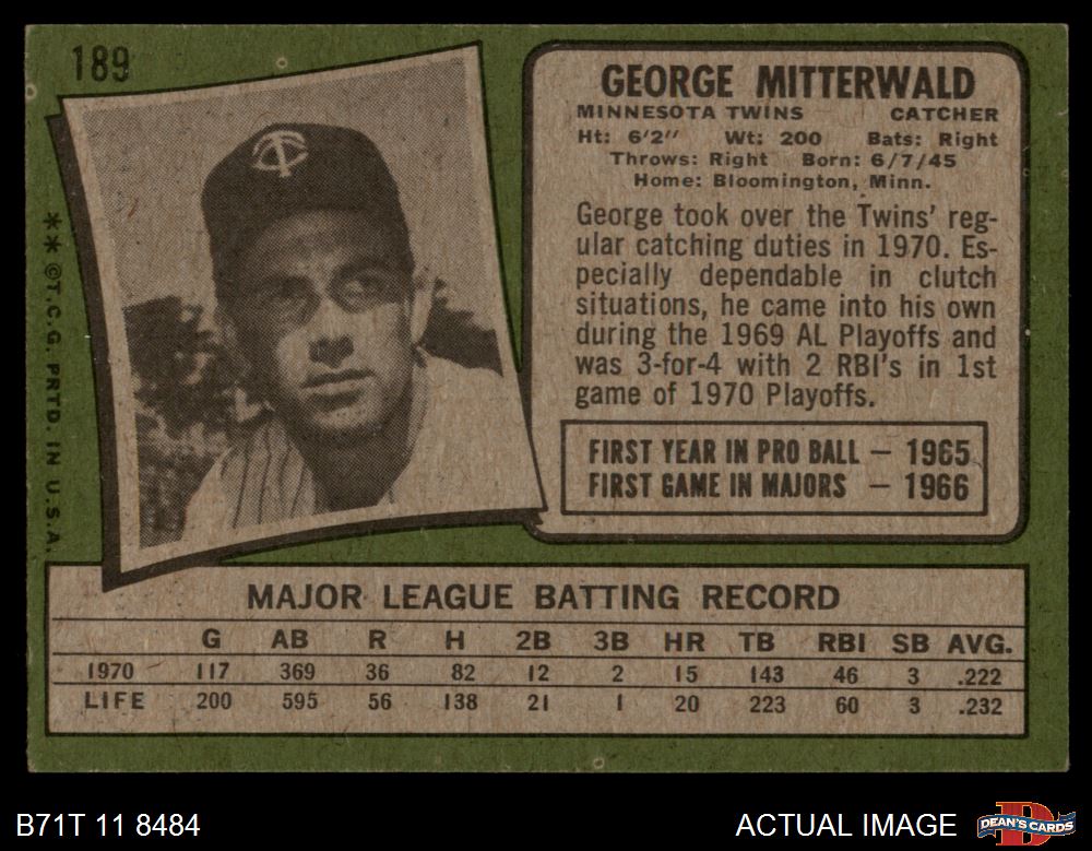 1971 Topps #189 George Mitterwald