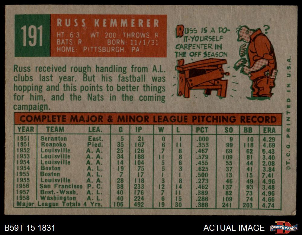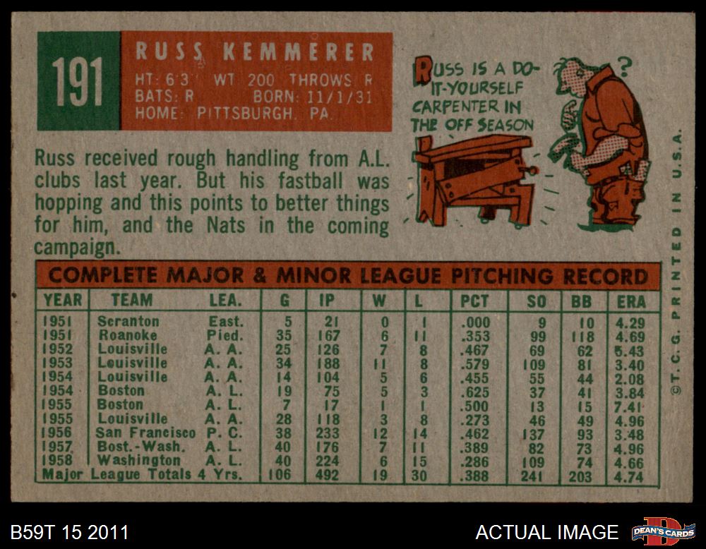 1959 Topps #191 Russ Kemmerer