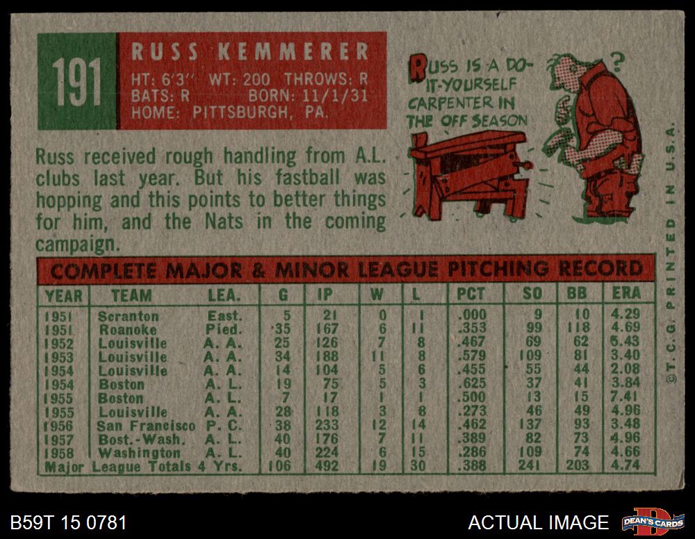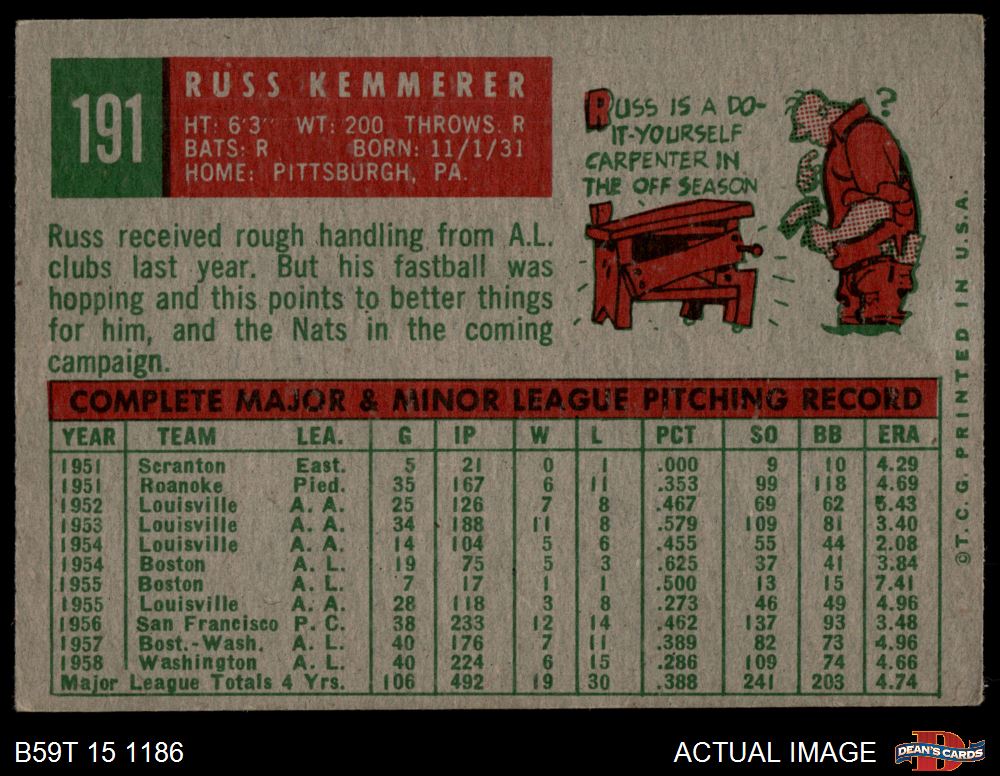 1959 Topps #191 Russ Kemmerer 3 - VG