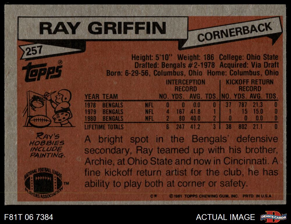 1981 Topps #257 Ray Griffin 7 - NM
