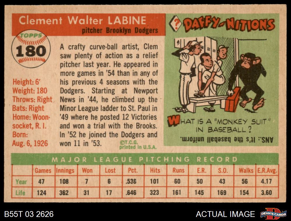 1955 Topps #180 Clem Labine 5 - EX