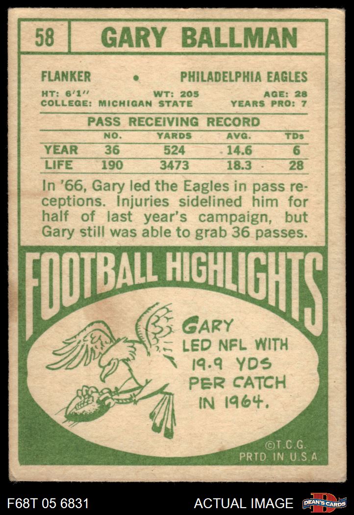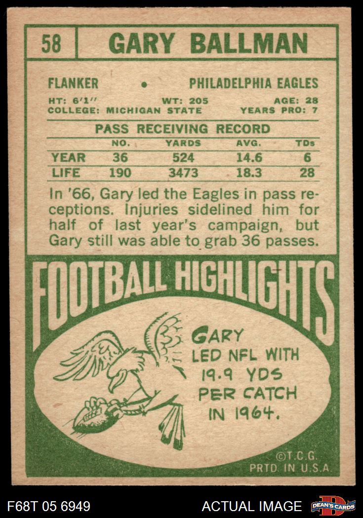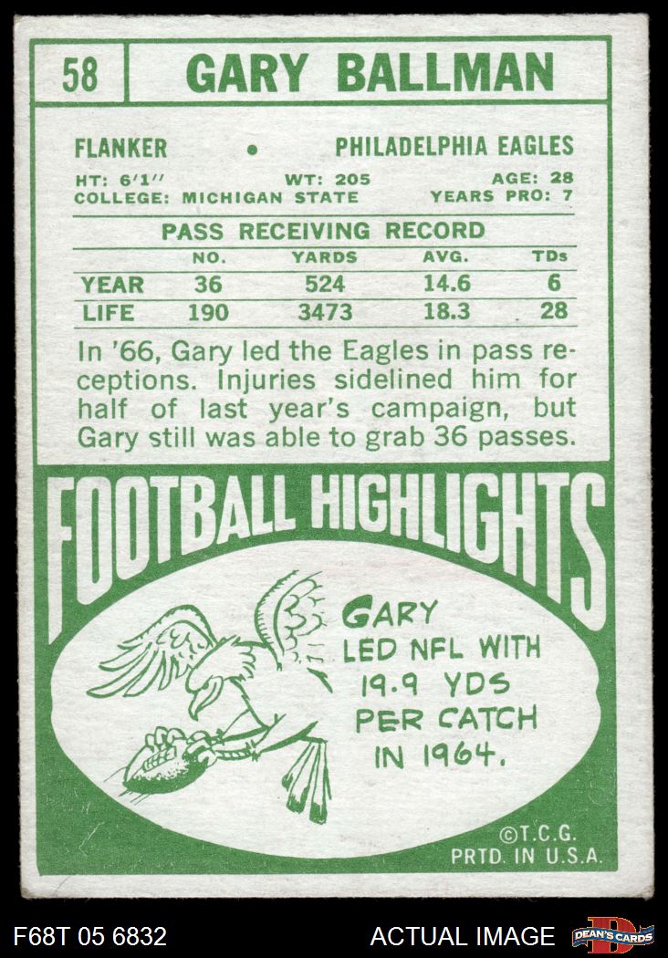 1968 Topps Football Cards (2,538 available)1968 Topps Eagles (131 available)