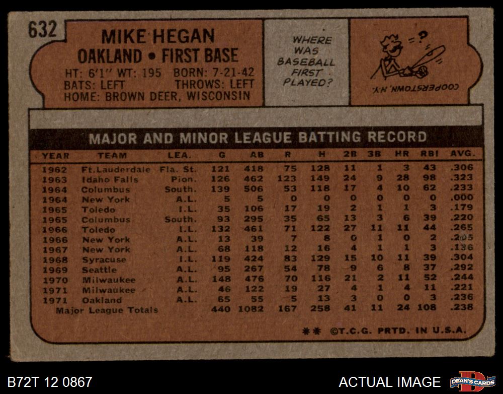 1972 Topps #632 Mike Hegan 1.5 - FAIR