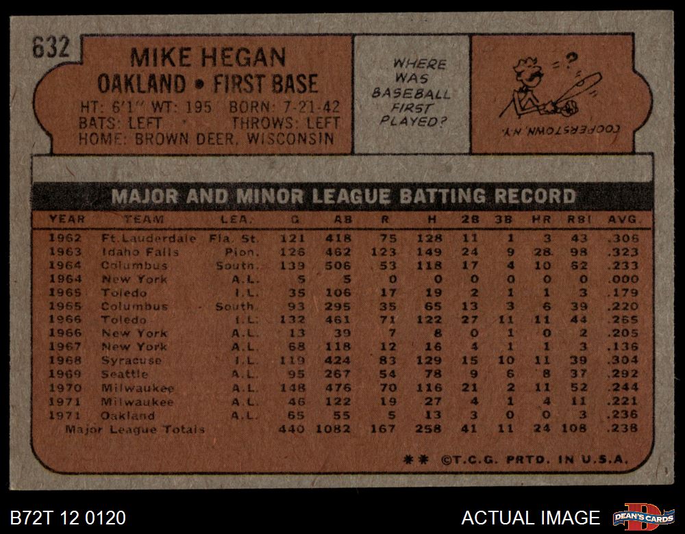 1972 Topps #632 Mike Hegan 6 - EX/MT
