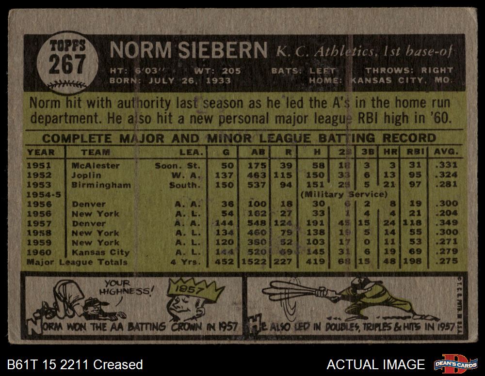 1961 Topps #267 Norm Siebern Front Thumbnail