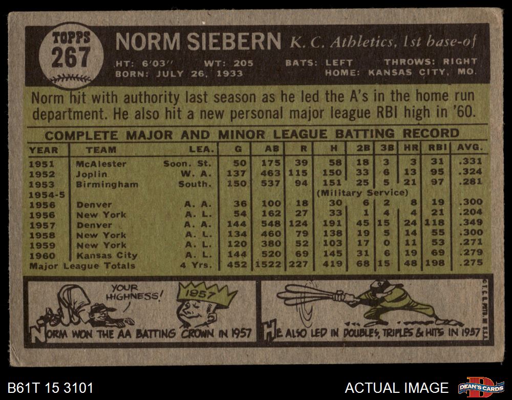 1961 Topps #267 Norm Siebern 3 - VG