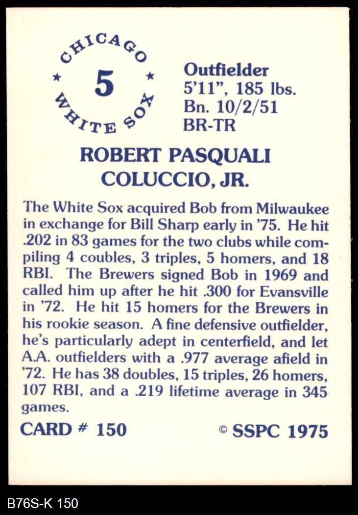 1975 SSPC #150 Bob Coluccio
