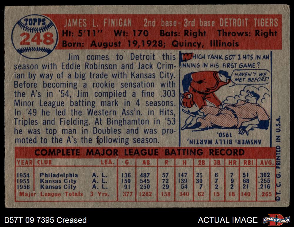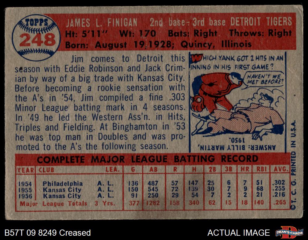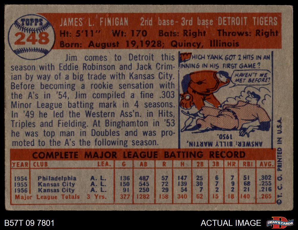 1957 Topps #248 Jim Finigan