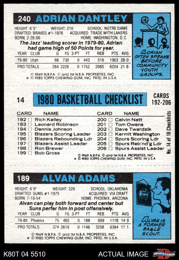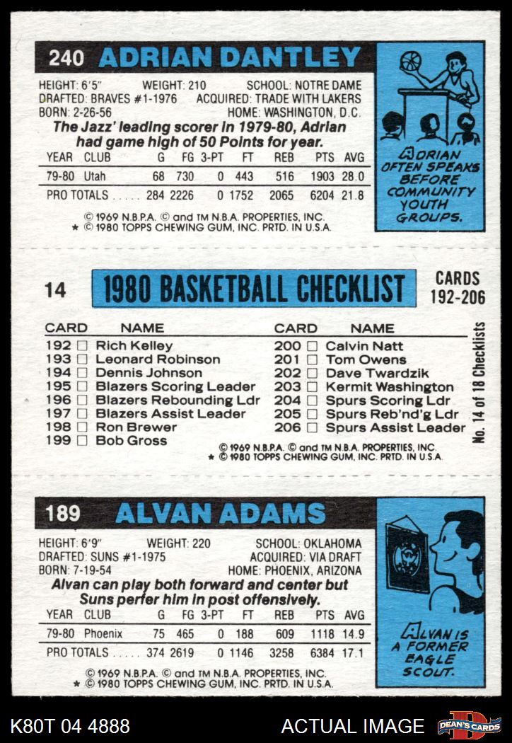 1980 Topps - Alvan Adams / World B. Free / Adrian Dantley 189 / 14 / 240 6 - EX/MT