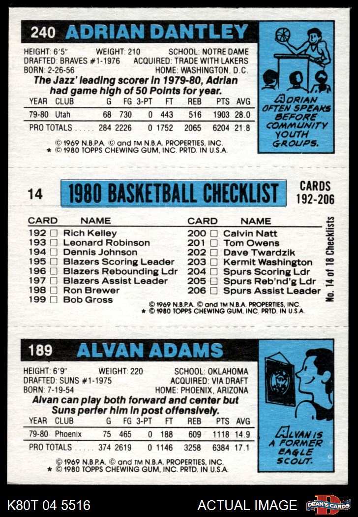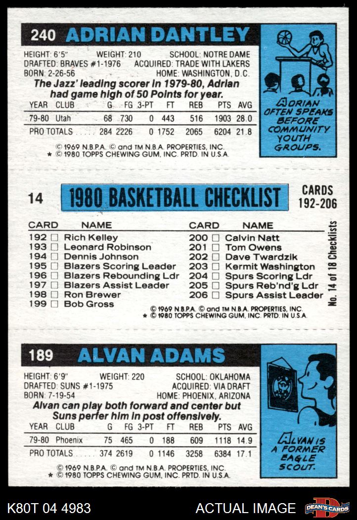 1980 Topps - Alvan Adams / World B. Free / Adrian Dantley 189 / 14 / 240 8 - NM/MT