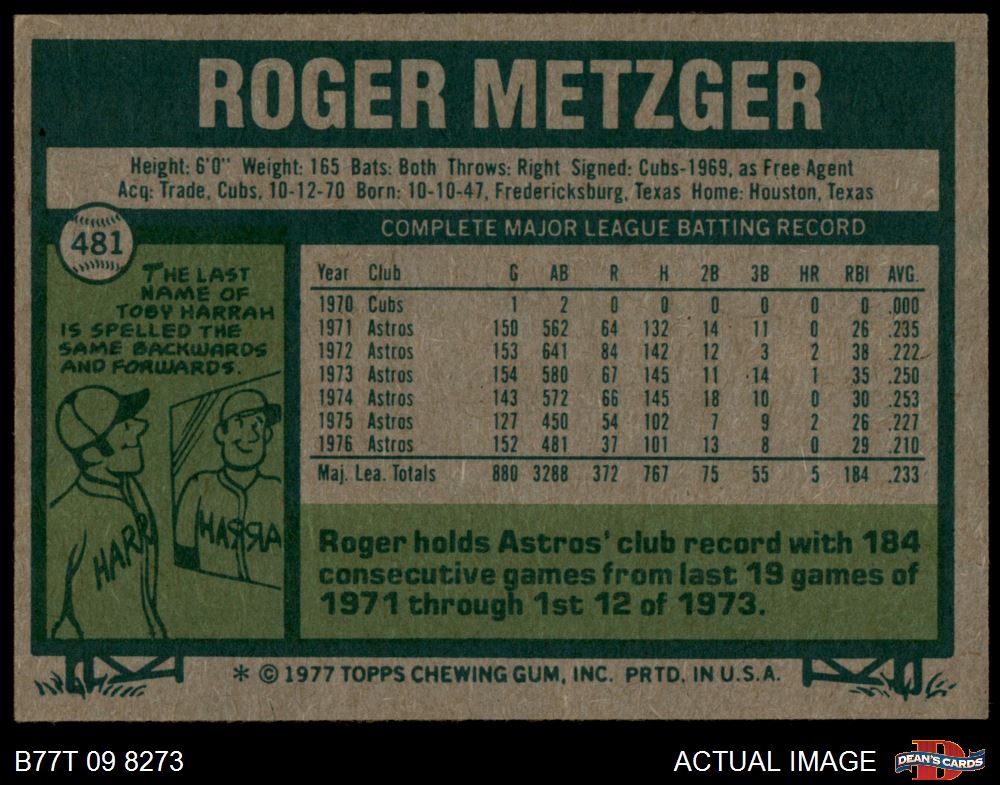 1977 Topps #481 Roger Metzger 4.5 - VG/EX+