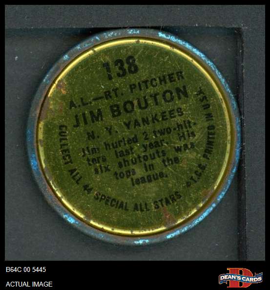 1964 Topps Coins #138 - Jim Bouton All-Star 1 - POOR