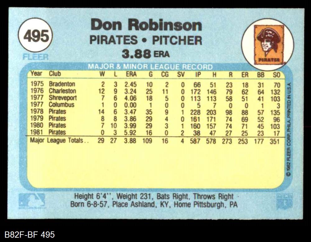 1982 Fleer #495 Don Robinson