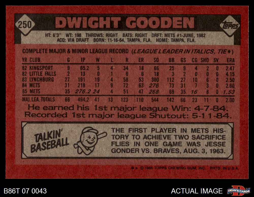 1986 Topps #250 Dwight Gooden 8 - NM/MT