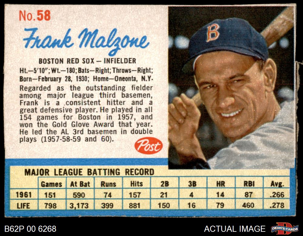 1962 Post Cereal #58 Frank Malzone 5 - EX