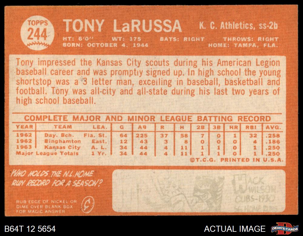 1964 Topps #244 Tony La Russa 3 - VG