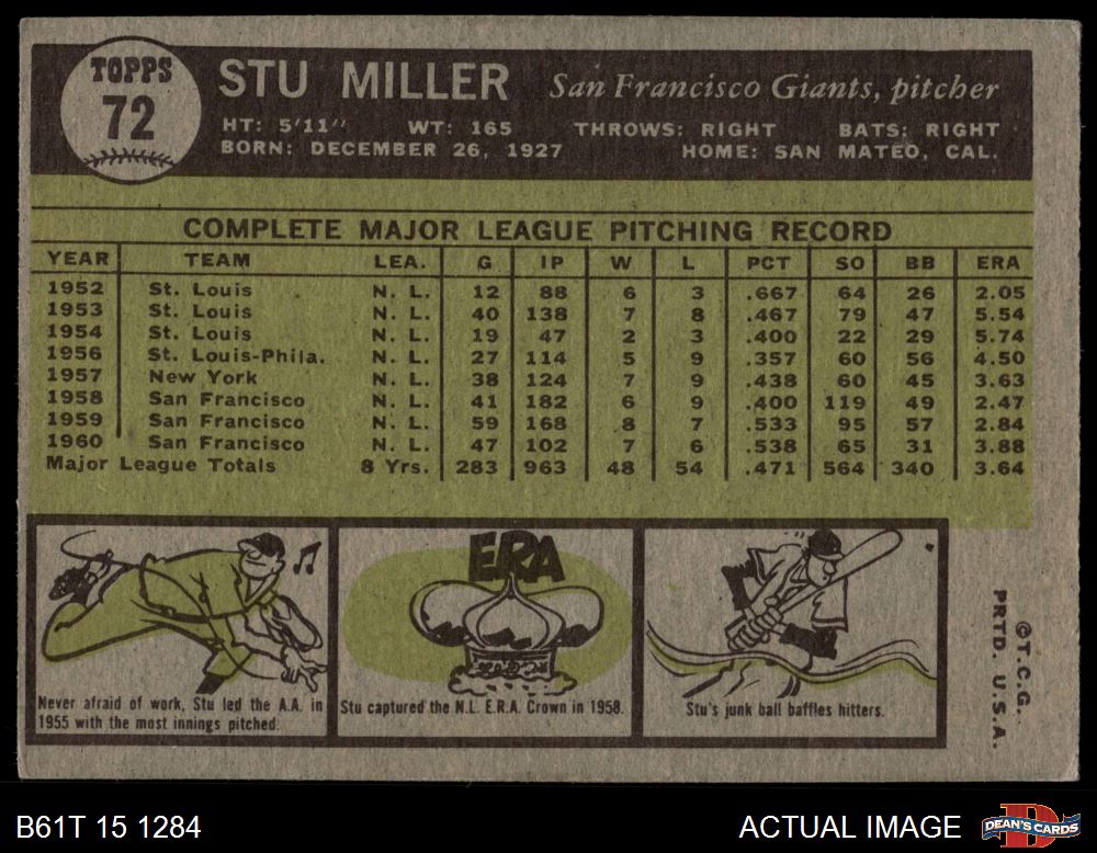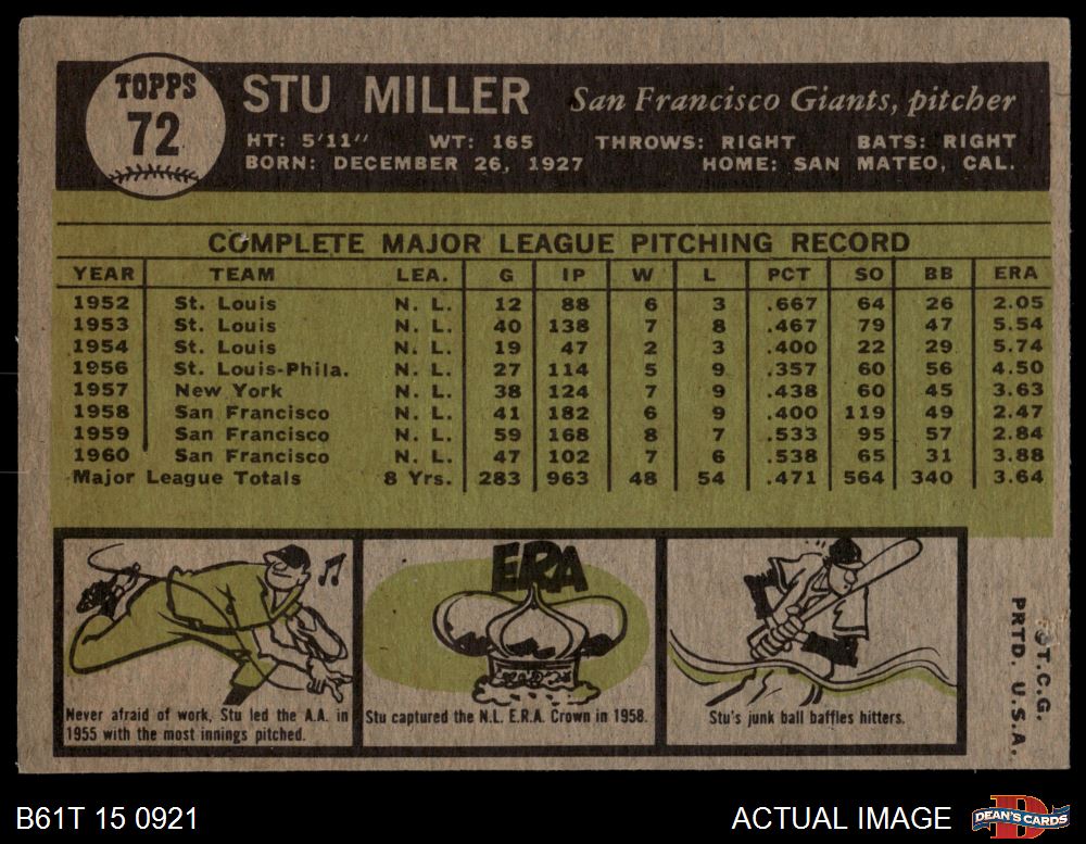 1961 Topps #72 Stu Miller 4 - VG/EX