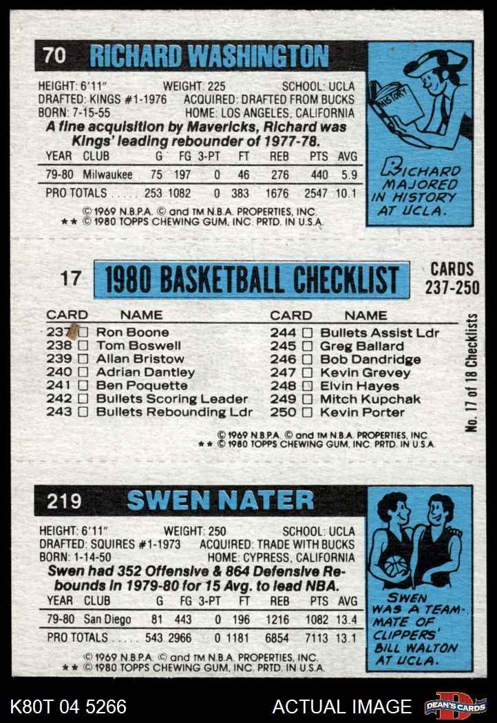 1980 Topps - Swen Nater / Calvin Murphy / Richard Washington 219 / 17 / 70 5 - EX
