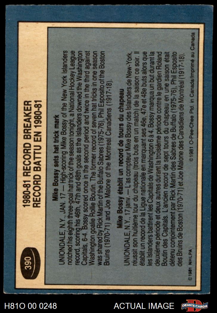 1981 O-Pee-Chee #390 - Mike Bossy Record Breaker 6 - EX/MT