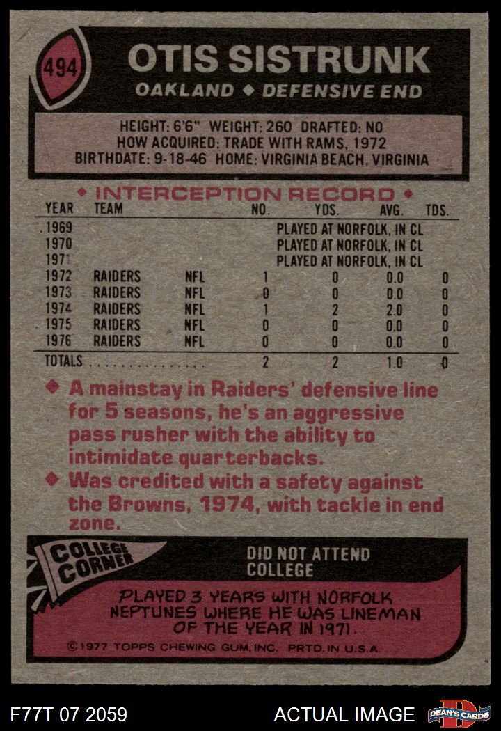 1977 Topps #494 Otis Sistrunk 7 - NM