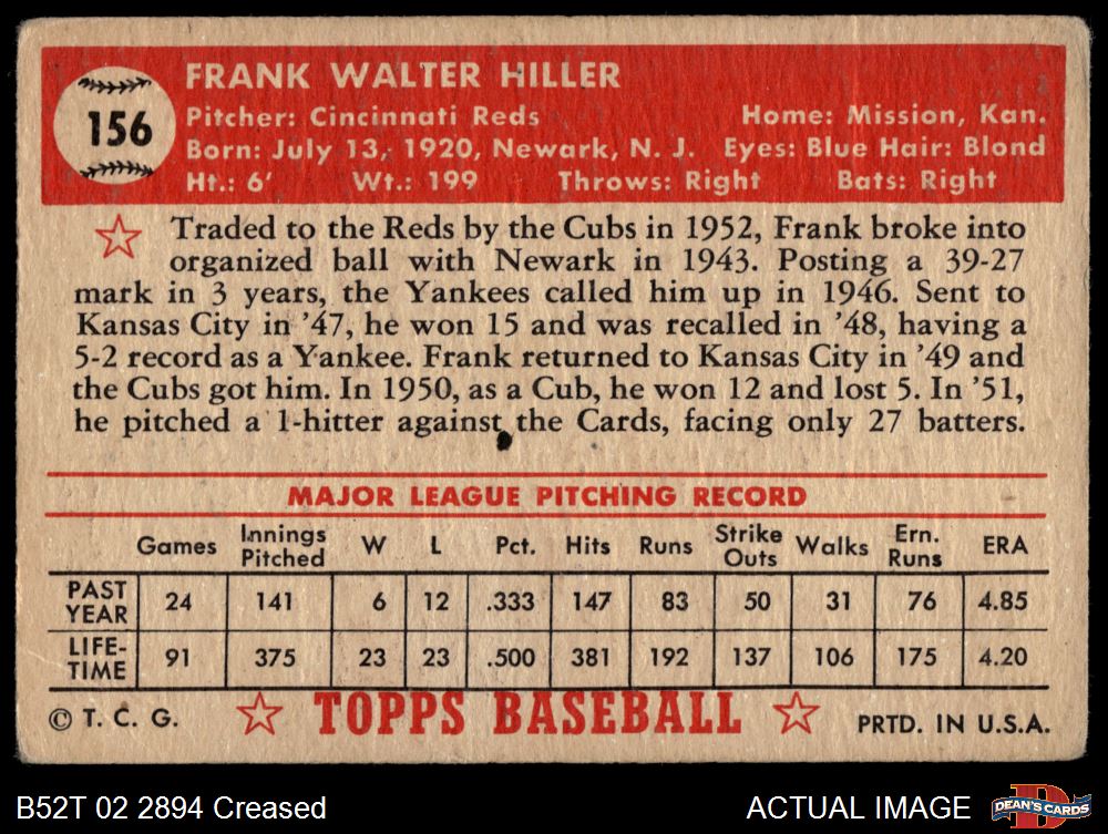 1952 Topps #156 CRM Frank Hiller 2 - GOOD