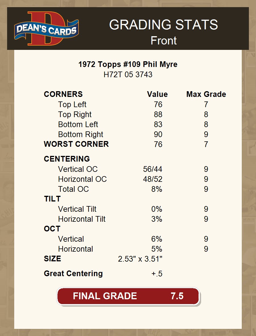 1972 Topps #109 Phil Myre 7.5 - NM+
