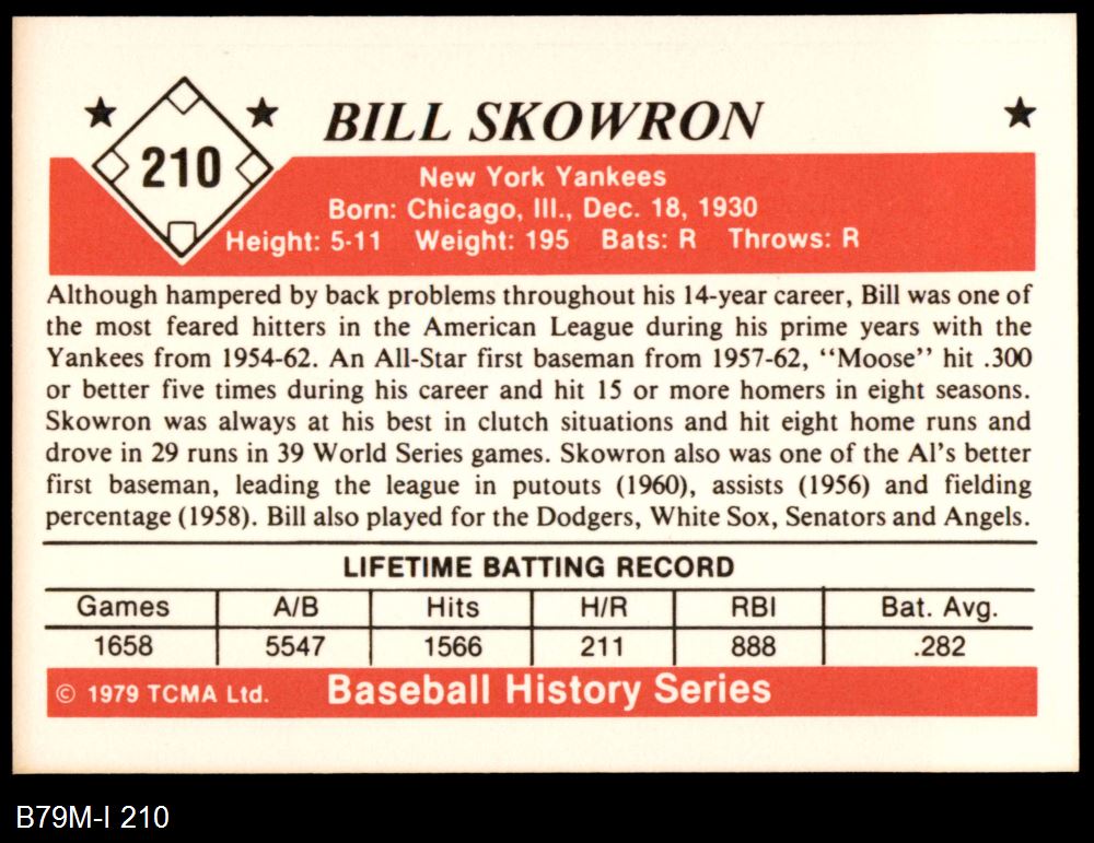 1979 TCMA The 1950's #210 Bill Skowron