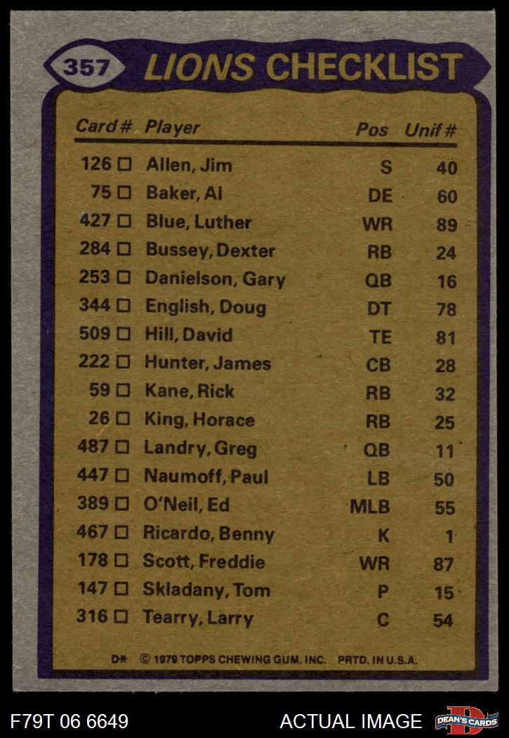 1979 Topps #357 - Dexter Bussey / David Hill / Jim Allen / Al Baker Lions Team Leaders & Checklist 3 - VG