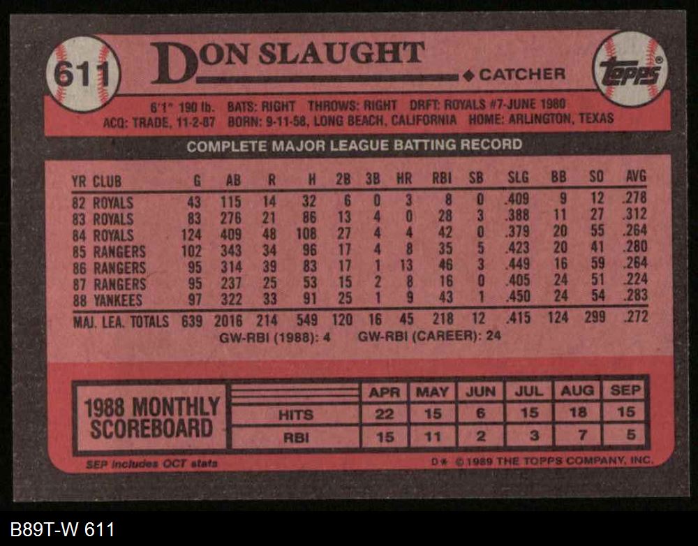 1989 Topps #611 Don Slaught 8 - NM/MT