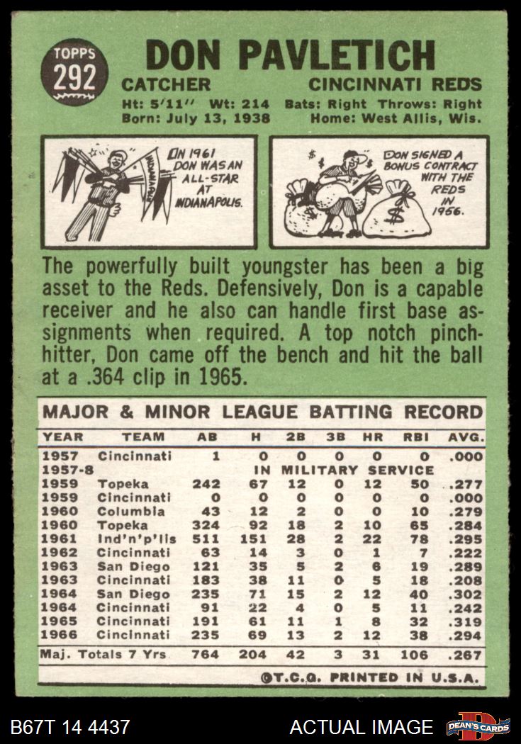 1967 Topps #292 Don Pavletich