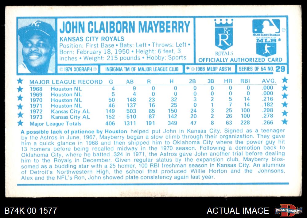 1974 Kellogg's #29 John Mayberry 2 - GOOD