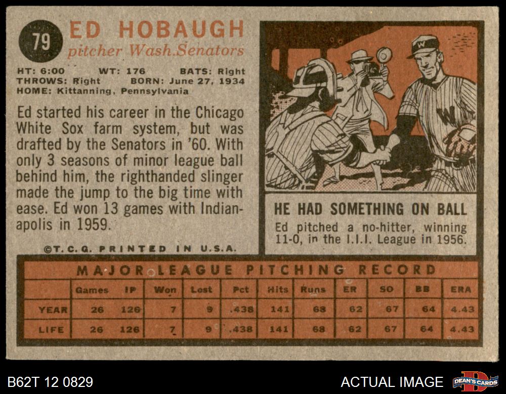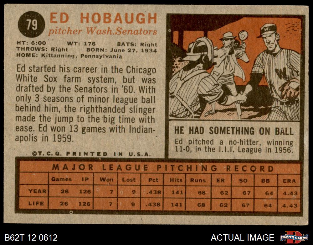 1962 Topps #79 Ed Hobaugh 2 - GOOD