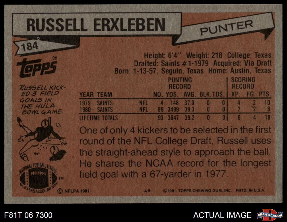1981 Topps #184 Russell Erxleben
