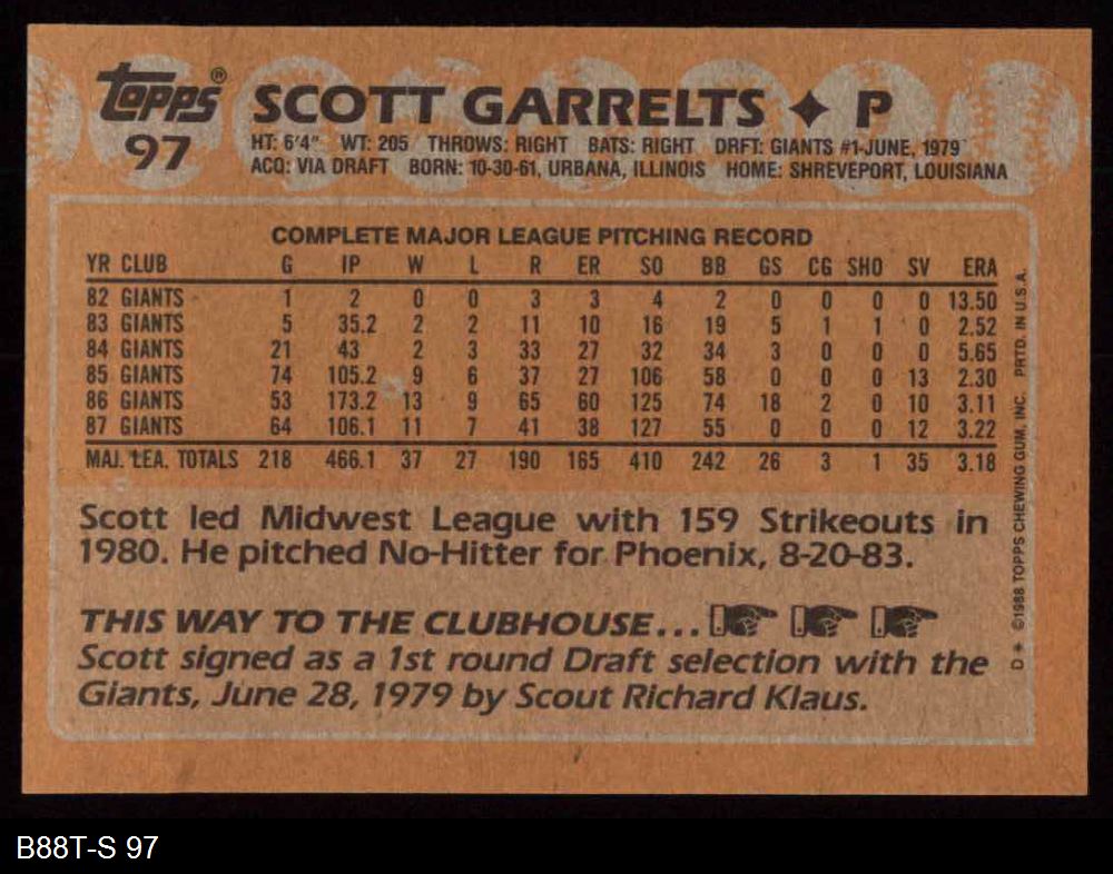 1988 Topps #97 Scott Garrelts