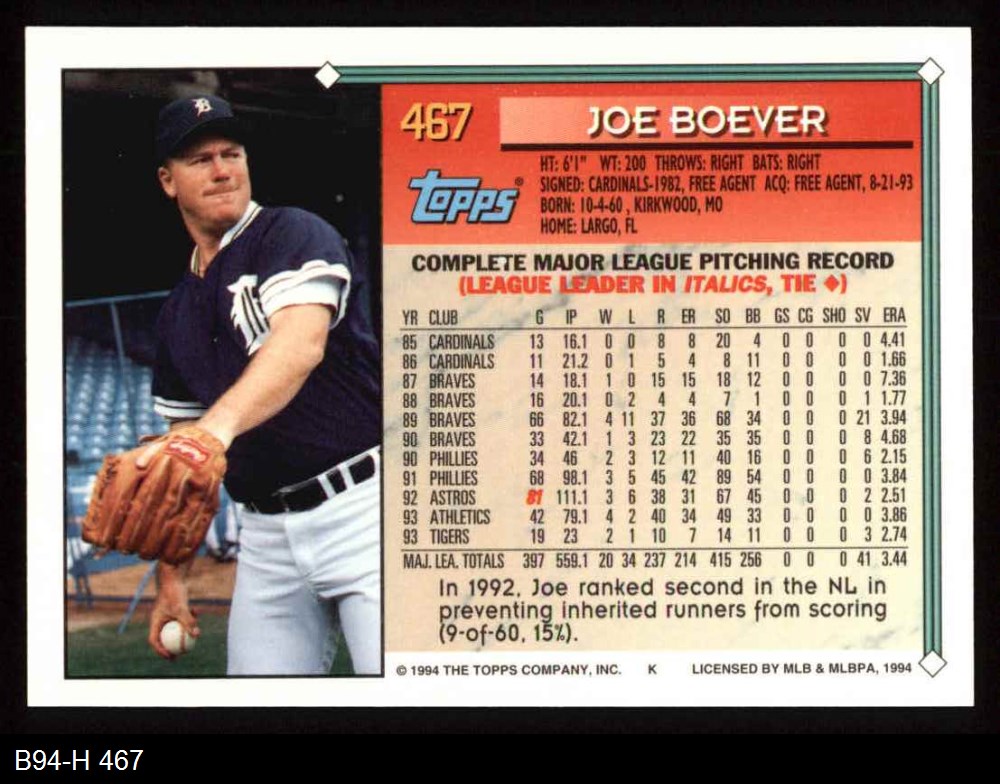 1994 Topps #467 Joe Boever