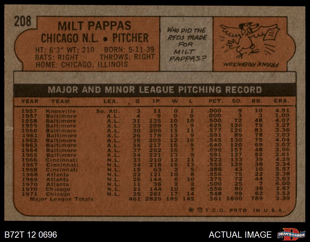 1972 Topps #208 Milt Pappas 6 - EX/MT