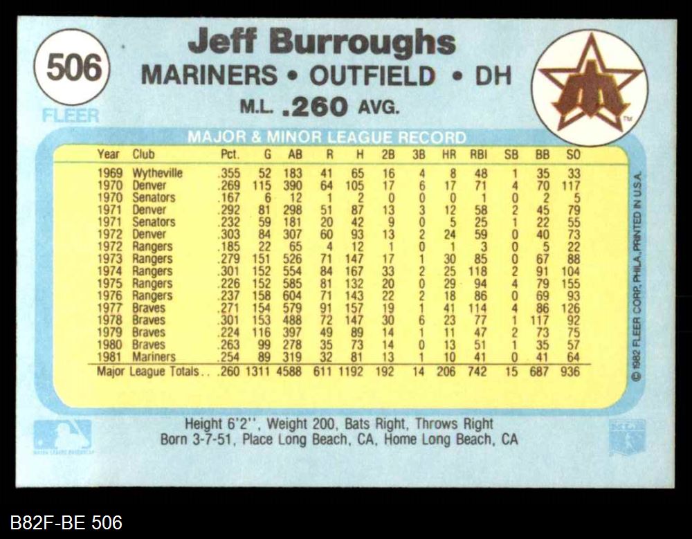 1982 Fleer #506 Jeff Burroughs 8 - NM/MT
