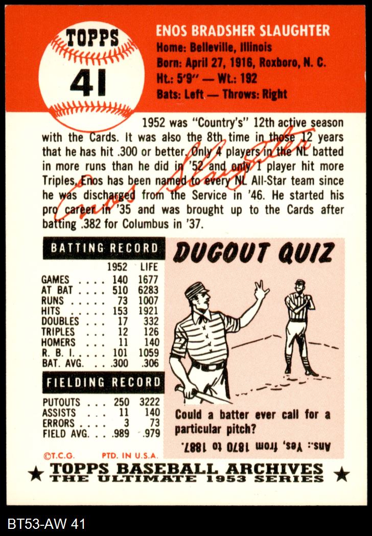 1953 Topps Archives #41 Enos Slaughter