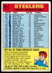 1974 Topps Checklist  Pittsburgh Steelers Team Front Thumbnail